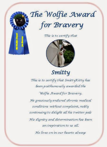 First recipient is Princess Tilly. This is a postumous award for our beautiful lady kitty friend. She sadly left us at the end of last year and we know her mum and all the family miss her dreadfully. She is keeping an eye on efurryone from her cloud and her sisfur Nugget is keeping the flag flying on twittery, so please make sure you follow Nugget, she is a very beautiful kitty as her sisfur, she misses Tilly so much too, so we must make her feel at home on twittery. Tilly was a wonderful friend to all of us, always kind and thoughful and very caring. A beautiful lady kitty.